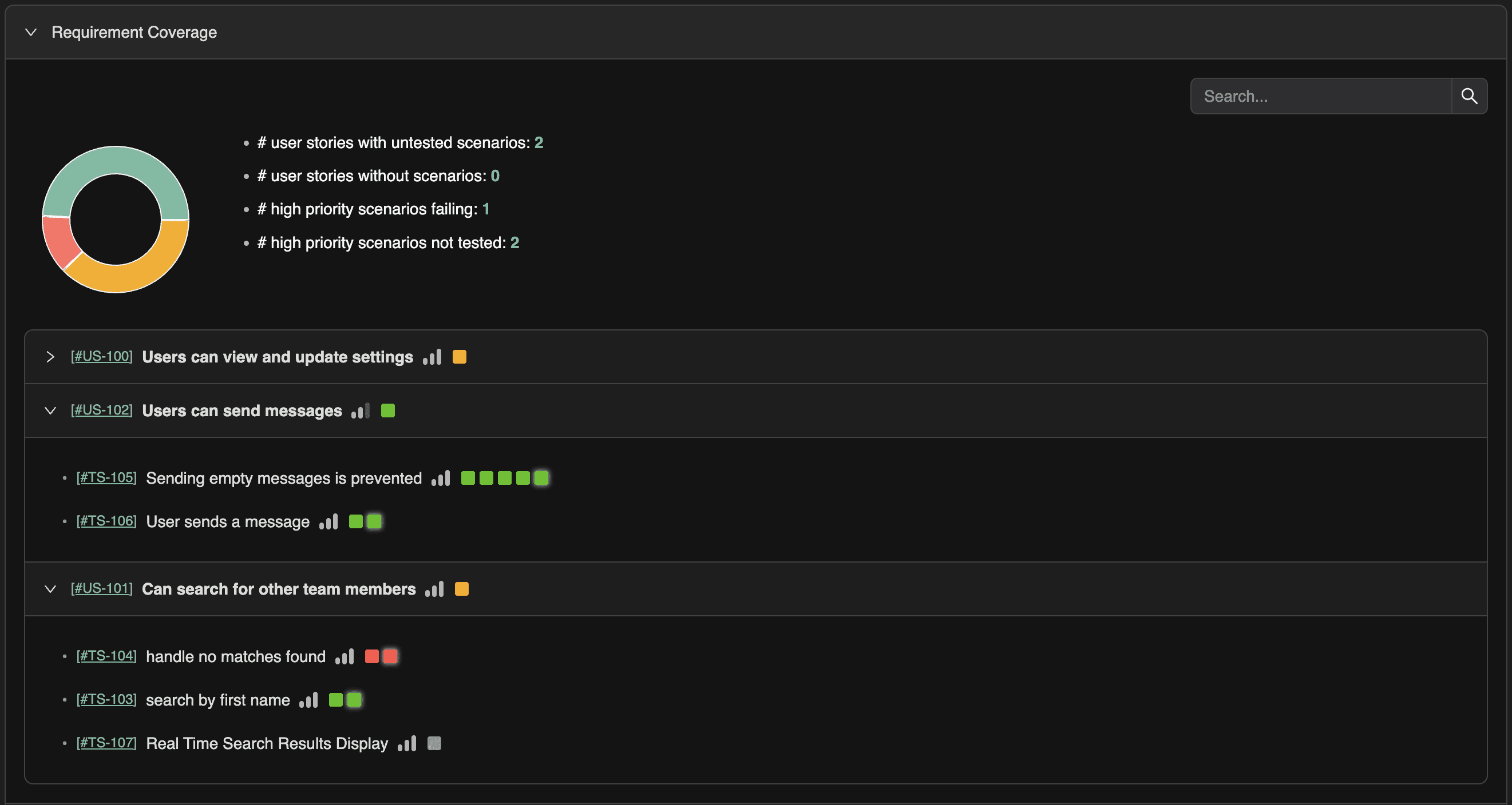 See which stories / scenarios are missing coverage. Identify recurring failure hotspots, trace UX issues back to the user journeys they affect. All without juggling through multiple tools or manually maintained spreadsheets.